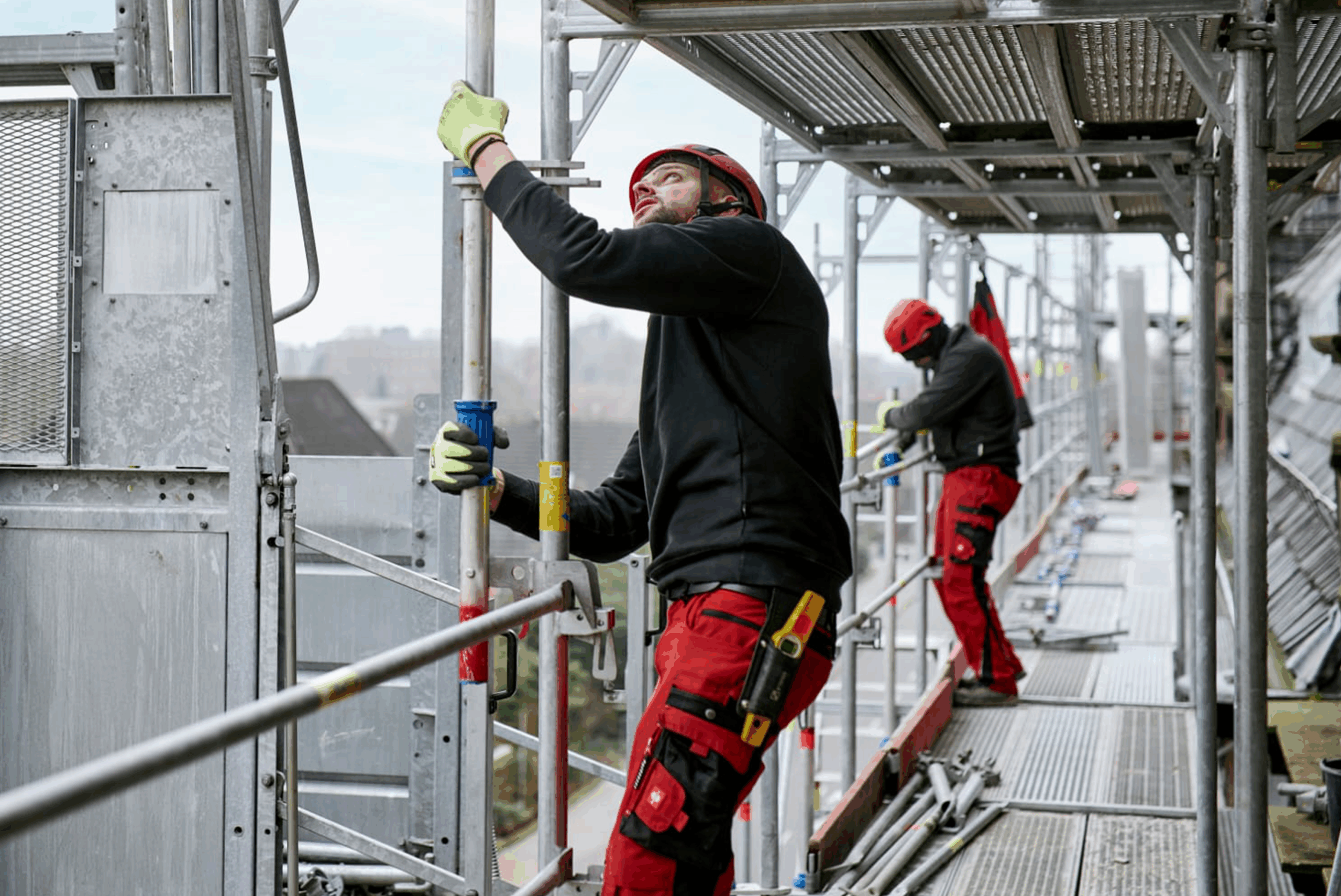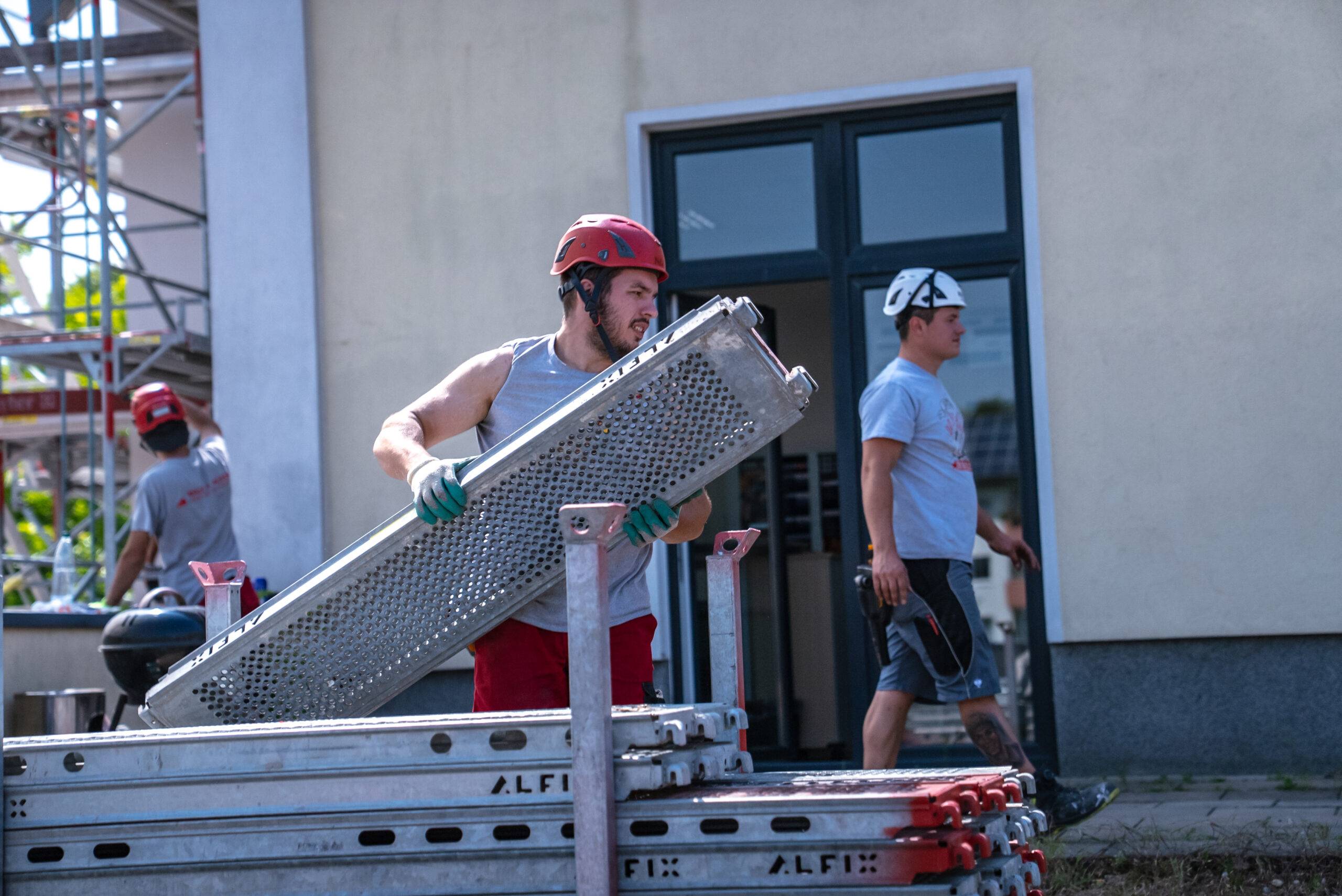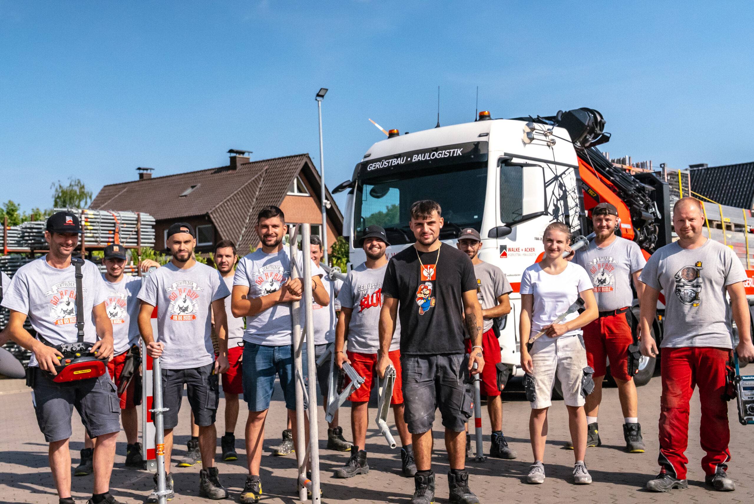 Suntem o echipă tânără, motivată și diversă. În fiecare zi ne ocupăm de montarea schelelor pentru clădiri complexe într-un perimetru de 150 km. La muncă suntem susținuți cu tot ce avem nevoie ca să montăm schelele în siguranță și rapid – avem mai multe încărcătoare frontale și lifturi care ne ajută cu treaba.